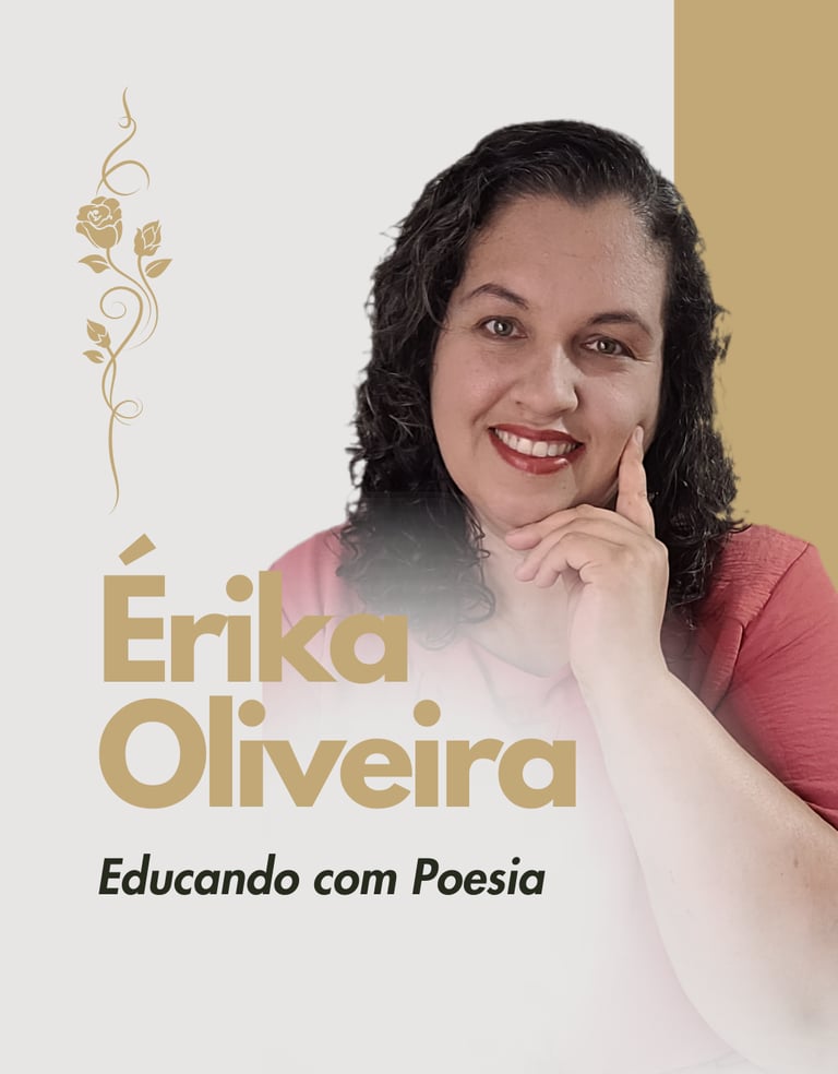 Formada em Magistério, graduada em Pedagogia, Especialista em Neuropsicopedagogia e concluindo Psicopedagogia. A professora tem uma trajetória de mais de 25 anos na Educação. Casada com Juliano, mãe educadora, Érika Oliveira, tem o propósito de levar aos seus alunos, uma educação que forma a alma, pela boa poesia, textos que edificam e cooperam na formação integral do ser humano.
